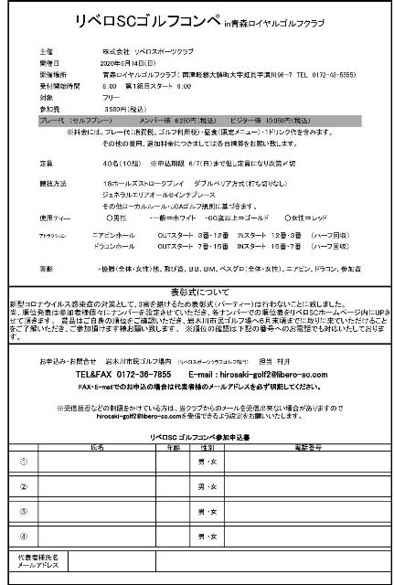 2020・6/14(日)に開催しました、「リベロSCゴルフコンペ」の成績表を発表します。