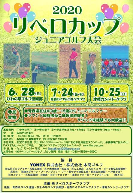 リベロカップジュニアゴルフ大会2020を開催いたします! 県内在住のジュニアゴルファー対象になります。