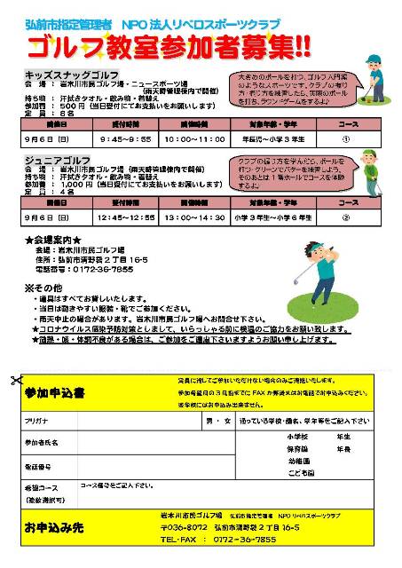 お問合せ・申し込みは岩木川市民ゴルフ場まで