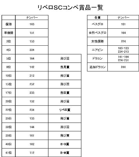 受賞者・・・黄色の部分及びベスグロ、アトラクションの自身のナンバーがある方