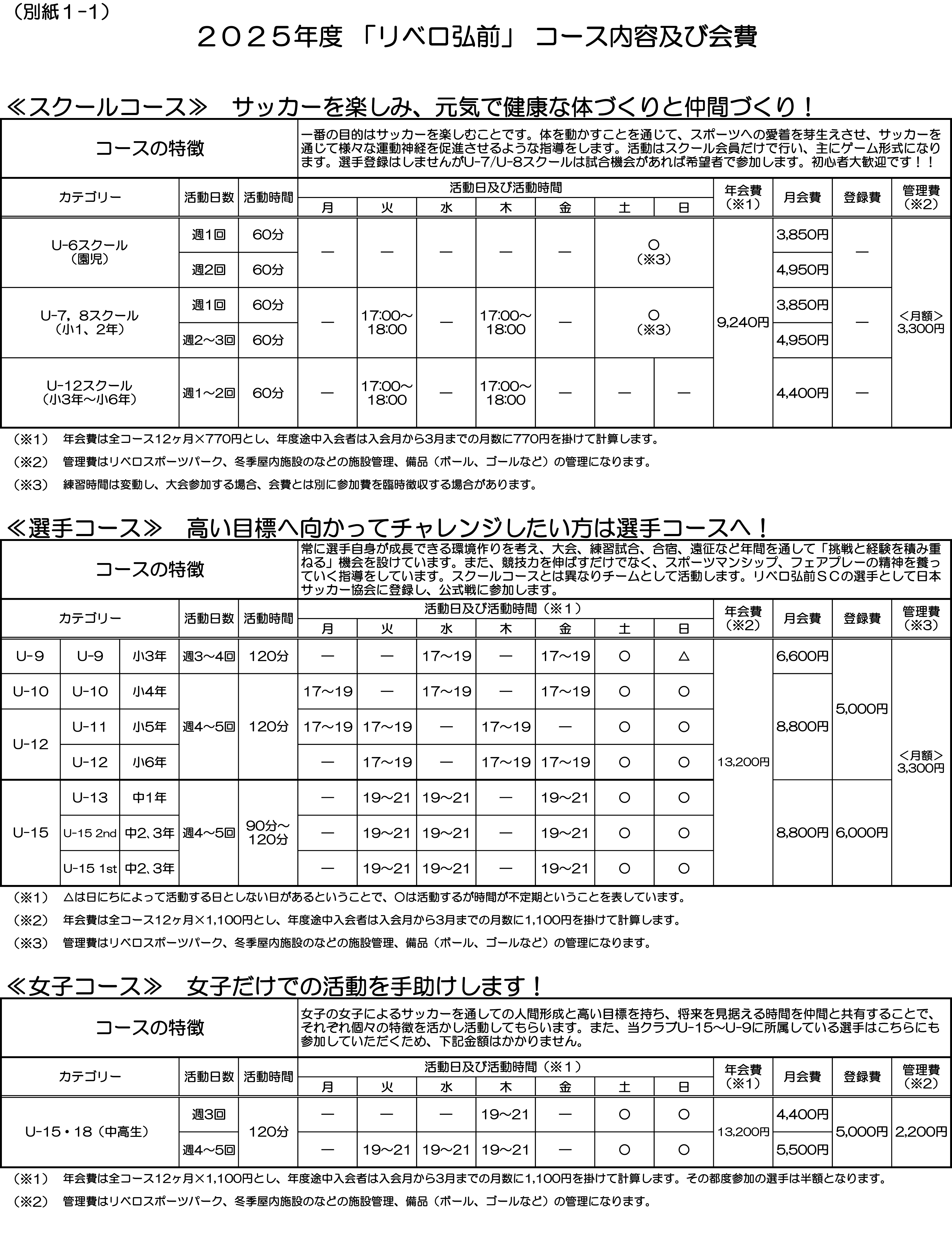 別紙1 会費